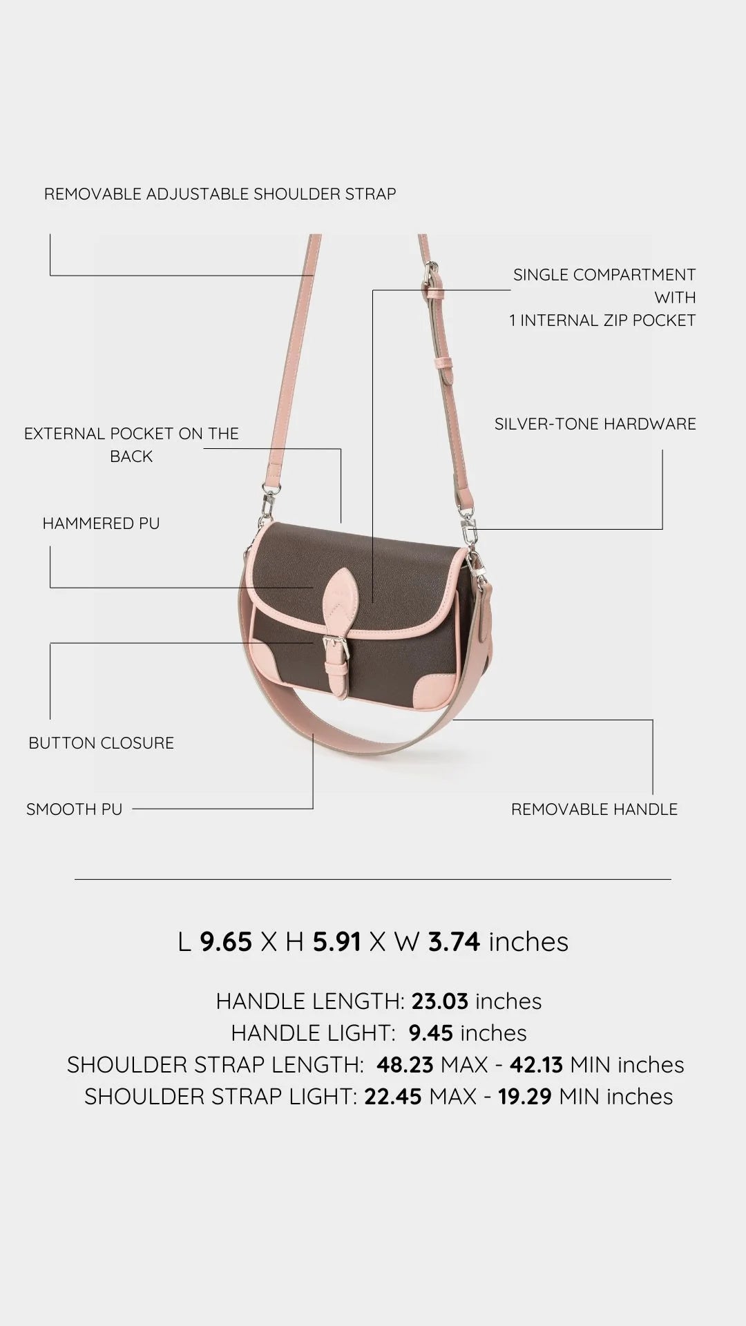 La Borsa Trinity unisce eleganza e funzionalità grazie al suo design in PU martellato che assicura resistenza e un tocco sofisticato. La chiusura a bottone garantisce semplicità e sicurezza, mentre il dettaglio a doppio colore rende ogni look unico e moderno.